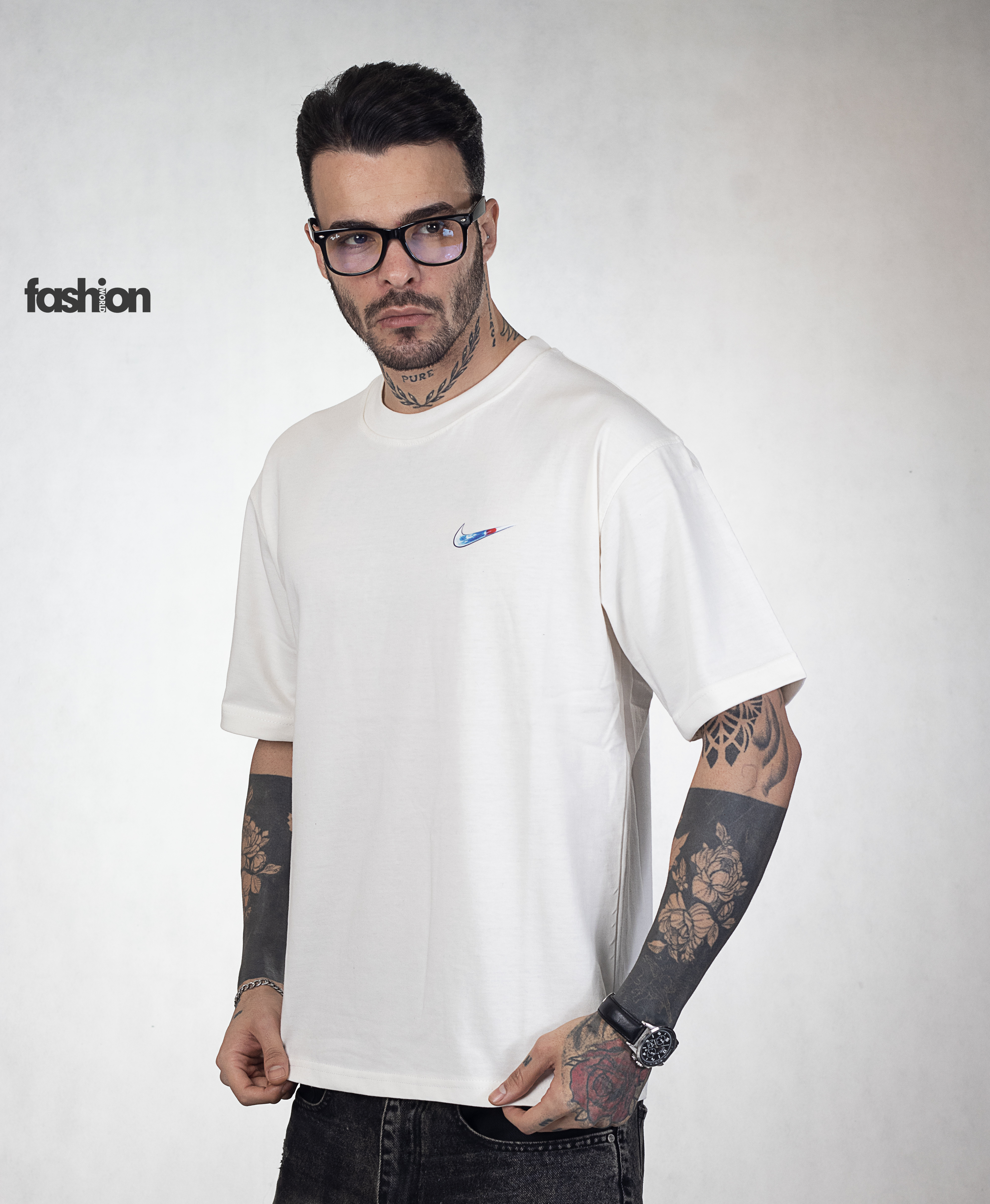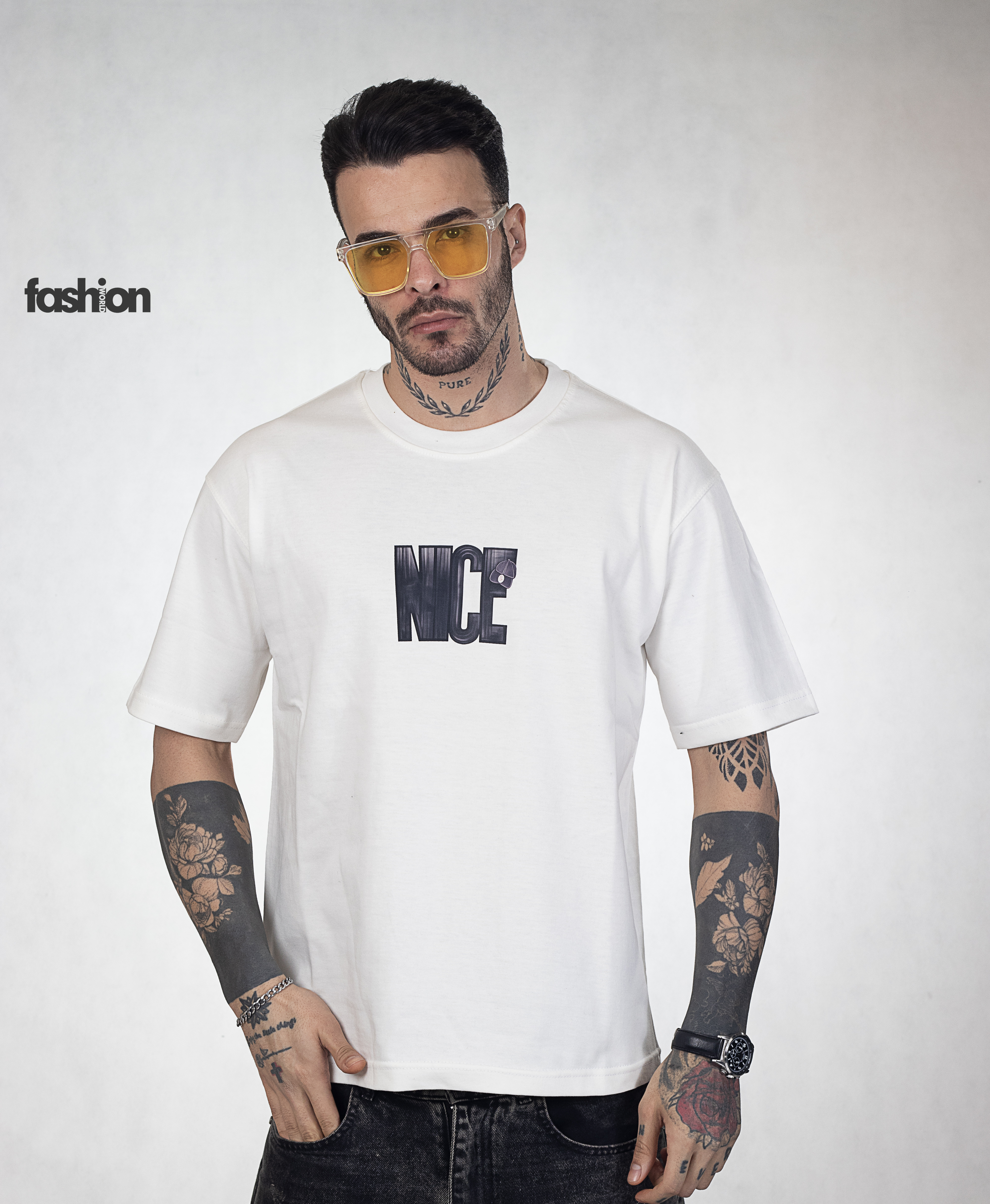 تیشرت پنبه ماکان گرم بالا چاپ گوشه سینه پفکی نورس فیس